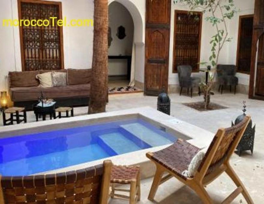 Located right in the heart of the Marrakesh Medina, the guest house is 950 meters from Djemaa El Fna Square and the main tourist sites : the souks, the Ben Youssef Medersa and the Bahia Palace. Structured around the central patio, the bed and breakfast has 5 rooms, an outdoor lounge and an indoor lounge with fireplace, a patio planted with trees, a massage parlour, a small heated swimming pool, and a large terrace with view on the Medina and the Atlas Mountains. After experiencing the buzz of the Medina, you can enjoy a peaceful rest in one of the lounges with view on the patio, soak up the sun on the terrace then cool off in the basin pool, or simply relax in the hammam. Riad Djebel is at your disposal to give advice on your visits and purchases and organise your stay here to offer you a unique and unforgettable experience.